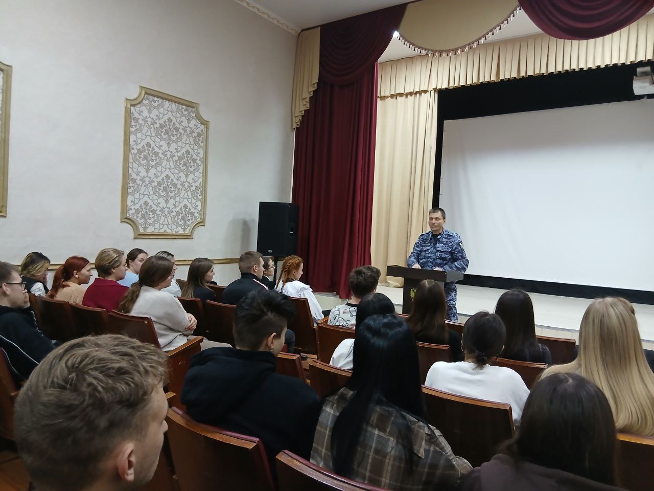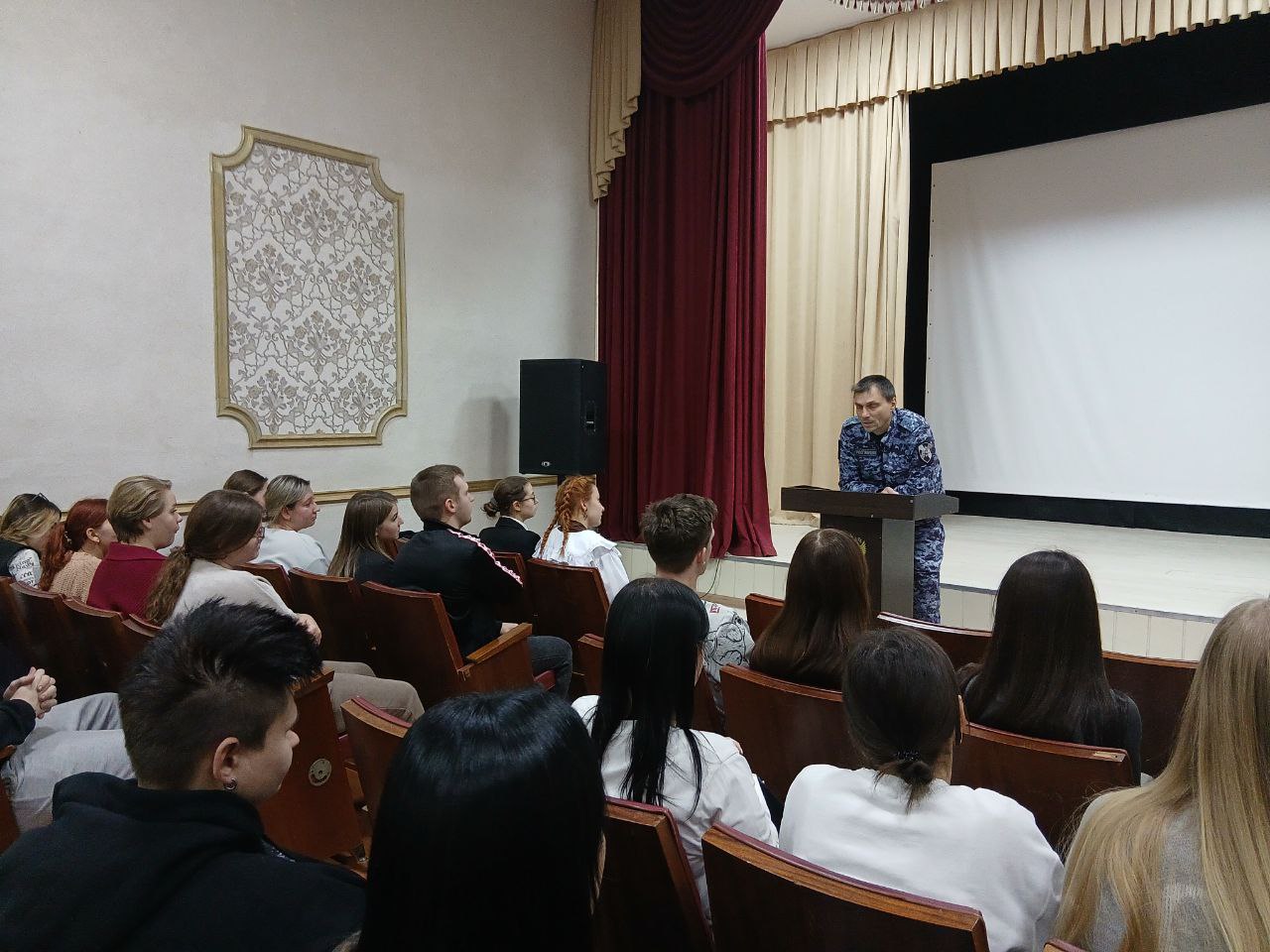 21 ноября 2025 года в БПОУ ОО «Болховский педагогический колледж» состоялась встреча выпускников с Филиным Сергеем Викторовичем, командиром взвода полиции Мценского отдела вневедомственной охраны, на которой речь шла о возможности трудоустройства в Росгвардии Орловской области. Отправной точкой в предложении вакансии стала должность полицейских. Обучающиеся колледжа узнали, что подготовку к поступлению на данную работу следует начать заранее, собрав необходимые документы и пройдя медицинскую комиссию для поступления в подразделения вневедомственной охраны Росгвардии Орловской области. Сергей Викторович познакомил студентов с условиями прохождения службы, а также с социальными гарантиями: выплата денежного довольствия, компенсация за наем жилья, бесплатное медицинское обслуживание, санаторно-курортное лечение, бесплатное вещевое обмундирование, возможность карьерного роста, право на получение пенсии после 20 лет работы. Встреча была содержательной и полезной для выпускников колледжа. Следует отметить интерес к построению карьеры в Росгвардии не только у молодых людей, но и у девушек колледжа.