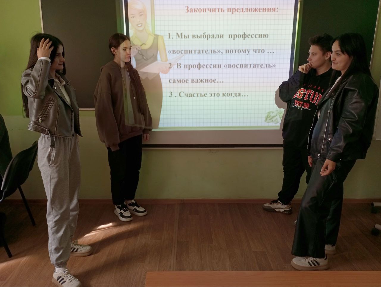 С целью повышения у обучающихся мотивации к выбранной профессии в преддверии Дня воспитателя обучающиеся 4 курса специальности 44.02.01 Дошкольное образование приняли участие в квест-игре «Праздник детства». Участники прошли интеллектуальные и творческие испытания на станциях речевого, физического, социально-коммуникативного и художественно-эстетического развития. Завершением квест-игры стал коллективный творческий портрет современного воспитателя. Участники мероприятия еще раз убедились, что быть воспитателем – это призвание. Это значит хотеть и уметь снова проживать детство с каждым ребёнком, видеть мир его глазами, удивляться и познавать всё вместе с ним.
