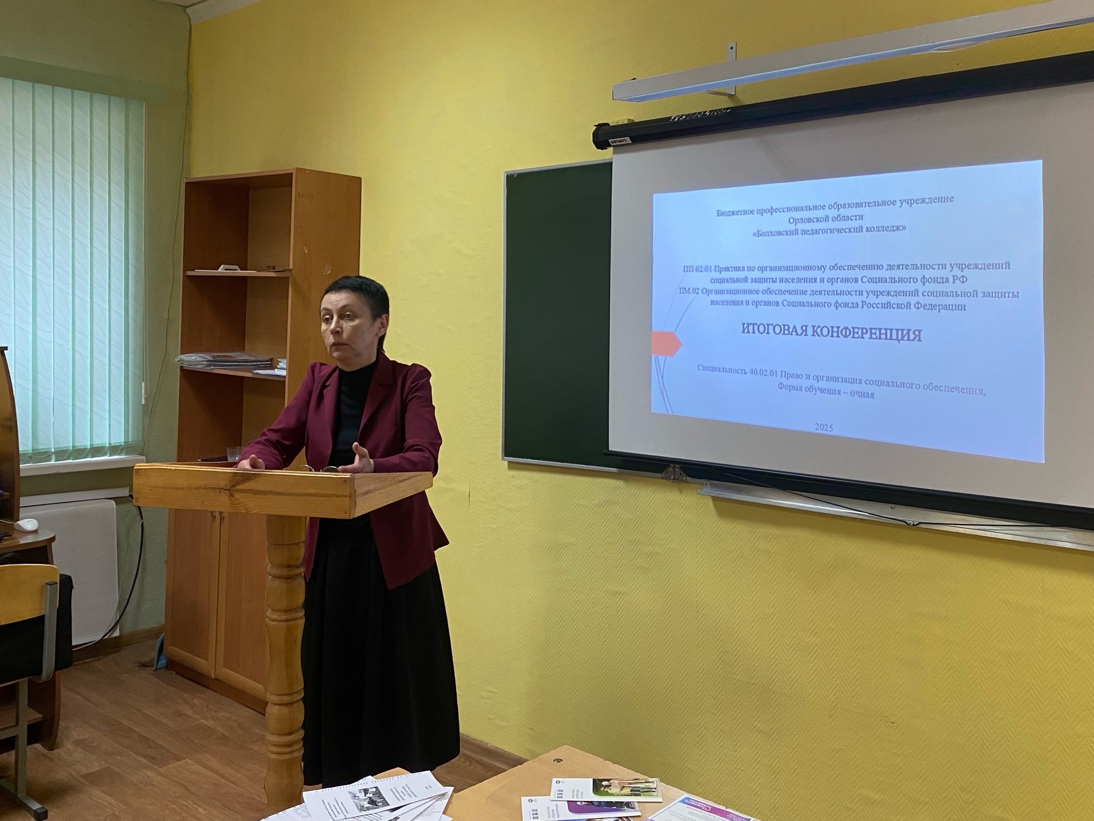 Практика проходила на базе Болховского педагогического колледжа, в учебной аудитории, которая стала для практикантов профильной лабораторией, а также в учреждениях социального и пенсионного обеспечения и обслуживания населения Орловской области.