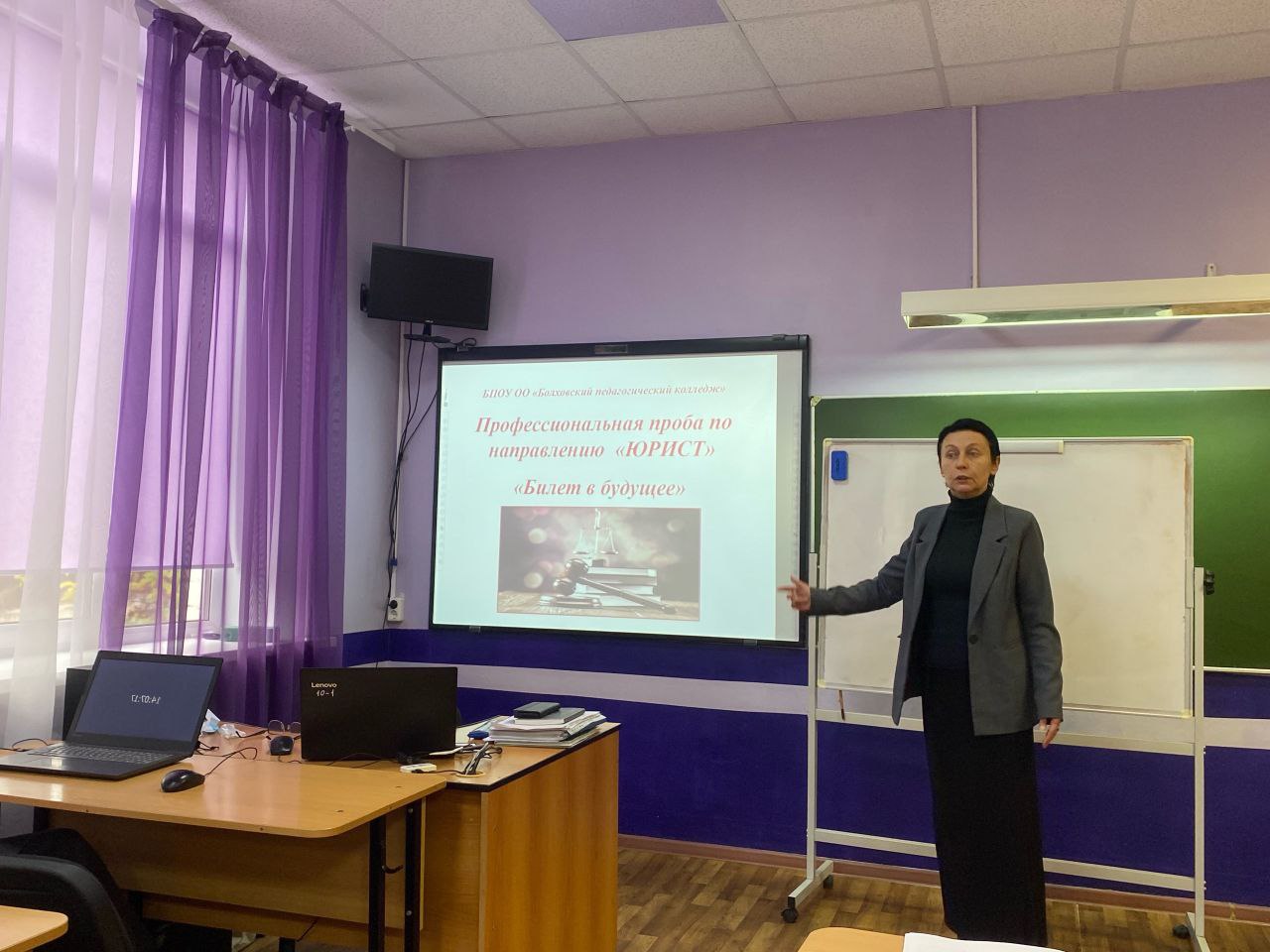 28 октября преподавателем юридических дисциплин Конюховой Л.В. БПОУ ОО «Болховский педагогический колледж» была организована профессиональная проба по направлению «Юрист» для обучающихся 8-11 классов МБОУ "Основная общеобразовательная школа №2 имени воина-интернационалиста Николая Николаевича Винокурова", МБОУ «Средняя общеобразовательная школа №3», МБОУ «Гимназия г. Болхова». Целью профессиональной пробы стало получение представления о различных направлениях юридической деятельности, приобретение навыков применения основных законодательных норм с помощью современных программных средств и аналитического мышления. Ребятам были предложены жизненные ситуации, по которым необходимо было дать правовую оценку взглядом будущего юриста. По итогам профессиональной пробы все учащиеся получили сертификаты готовности к выбранной профессии.