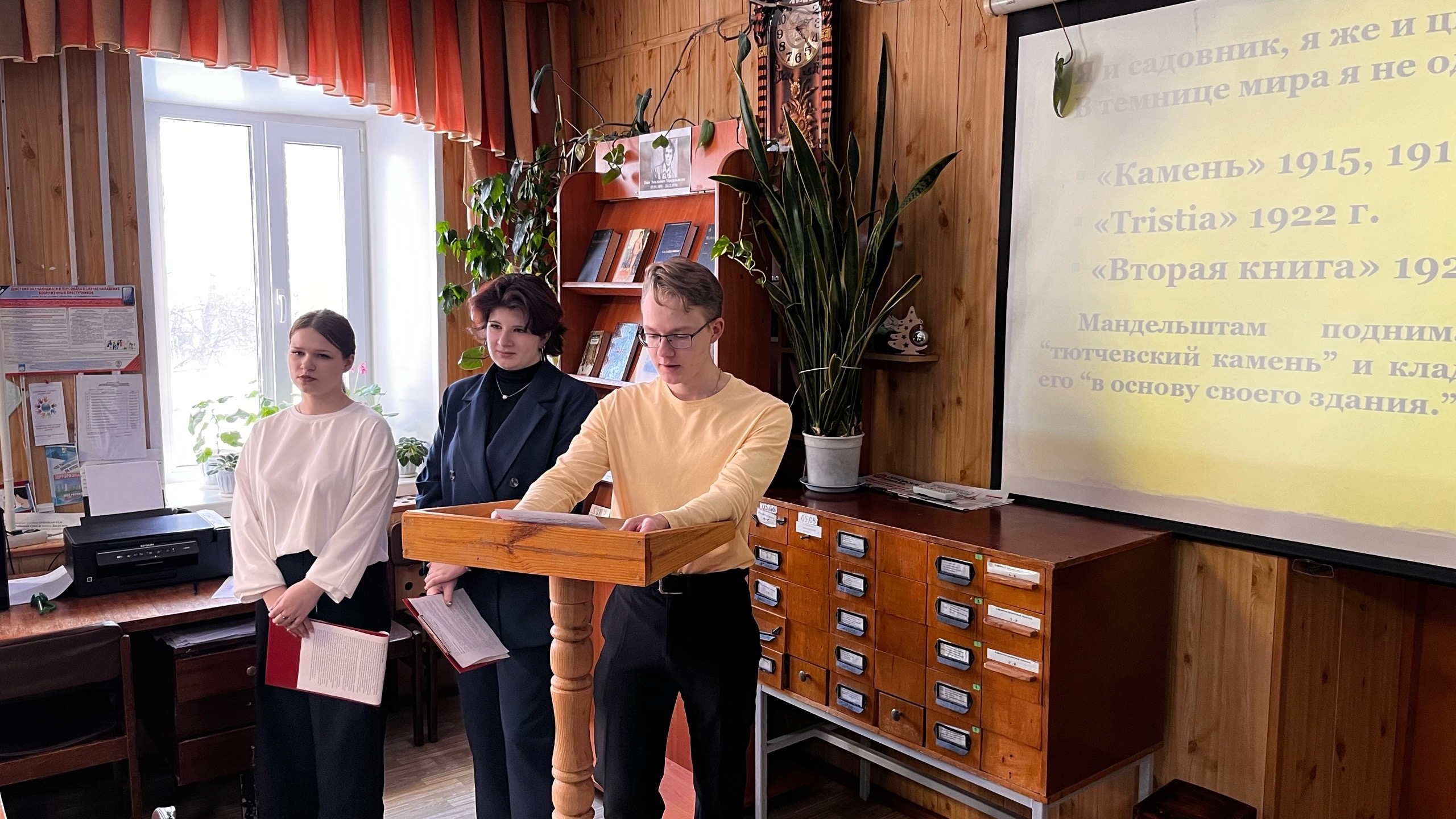 В рамках литературной гостиной «Поэтическое сердце России», состоялась встреча с обучающимися 3 курса специальности 44.02.06 Профессиональное обучение (по отраслям), посвященная 135-летию со дня рождения О. Э. Мандельштама. В настоящее время Осип Мандельштам возвращается к своим читателям, осознавая, без чего вынуждены были обходиться столь долгое время. Можно создать многотомную биографию, но О. Э. Мандельштам больше своей биографии, потому что он - целый мир, счастье и трагедии, гармония и разлад, которые будут доходить к потомкам и спустя десятилетия. Особенно, если при жизни творчество автора не было исчерпано даже наполовину.