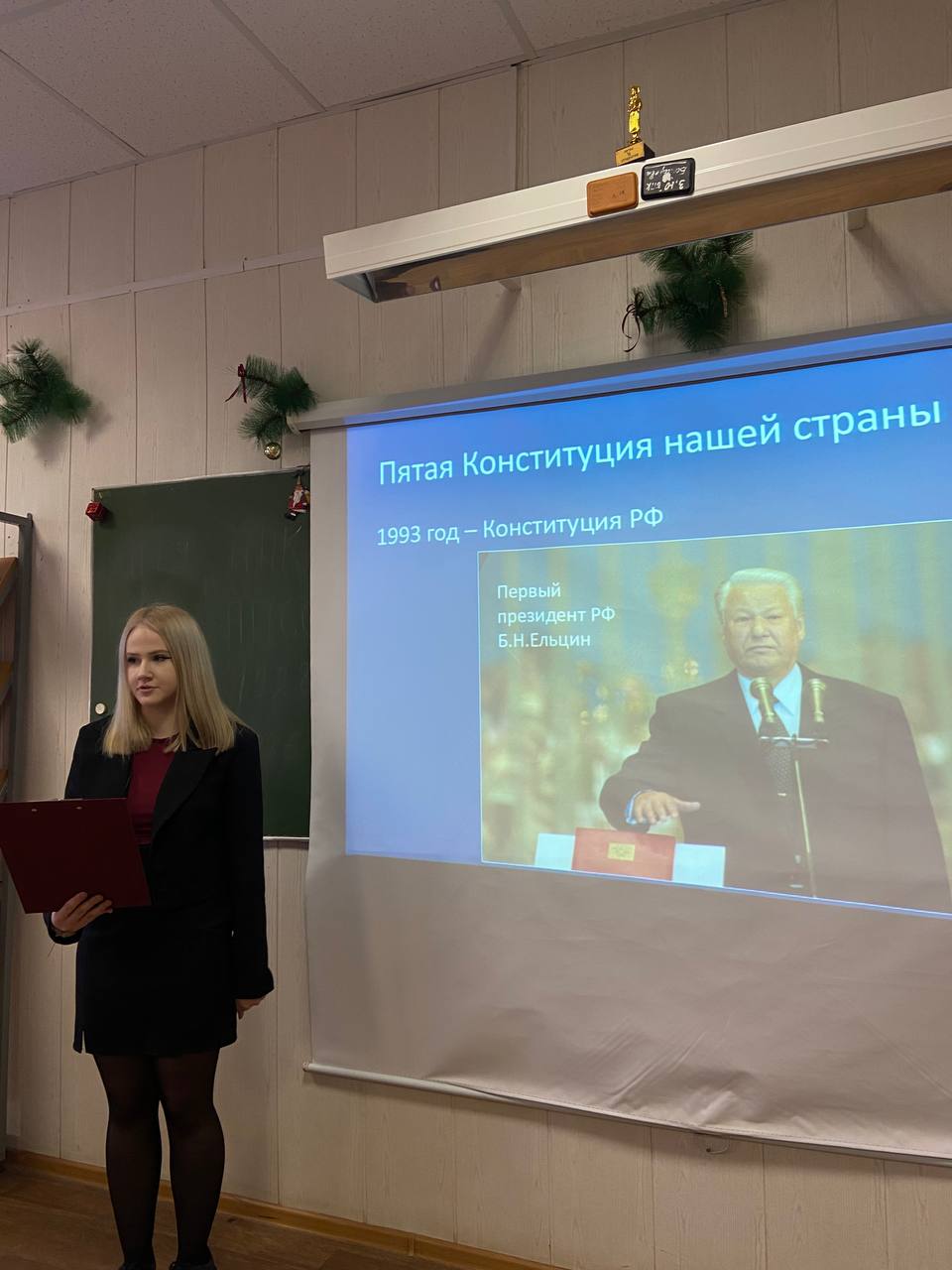 Юриспруденция приняли участие в деловой игре «Моя страна - моя Конституция», в ходе которой студенты обсуждали этапы в развитии страны и исторические процессы. Действующий закон был принят 32 года назад — 12 декабря 1993 года, но для нашей страны это не первый подобный документ. Конституция является основой всей правовой системы России и определяет смысл и содержание других законов. 12 декабря 1993 года состоялось голосование за принятие Конституции Российской Федерации. За принятие Конституции проголосовало 58,43%, против – 41,57%. Она закрепила принципы современной российской государственности, определила полномочия ветвей власти, гарантировала права и свободы граждан.
