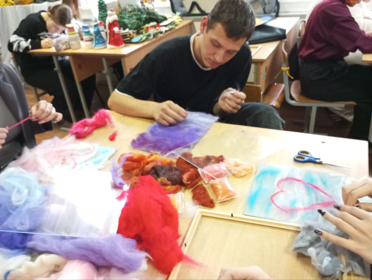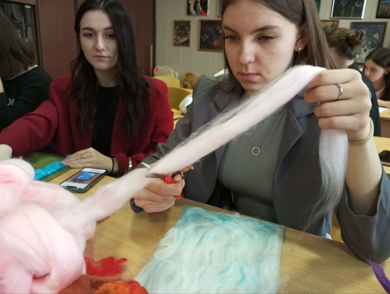 19 ноября в рамках проведения недели предметно-цикловой комиссии технологии и естественно-научных дисциплин преподавателем специальных дисциплин Костюк Ксенией Анатольевной организована работа творческой лаборатории по изготовлению декоративного панно из шерсти «Сердце для любимой мамы». Активными участниками стали студенты 2 курса специальности 44.02.05 Коррекционная педагогика в начальном образовании, которые с большим энтузиазмом включились в работу. По итогам работы у каждого в руках был памятный подарок, который ребята подарят свои мамам.