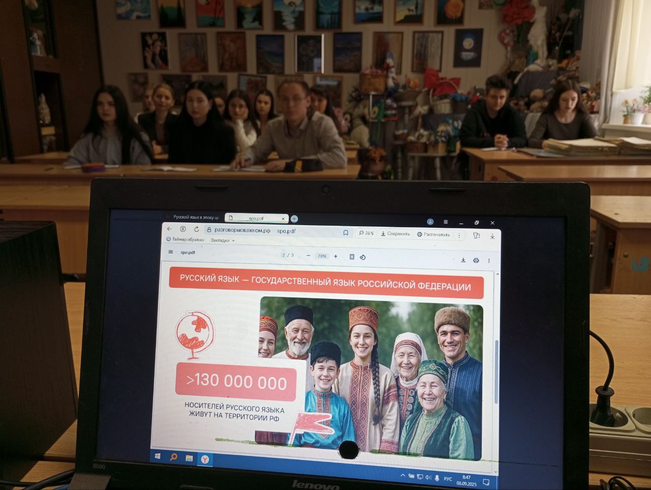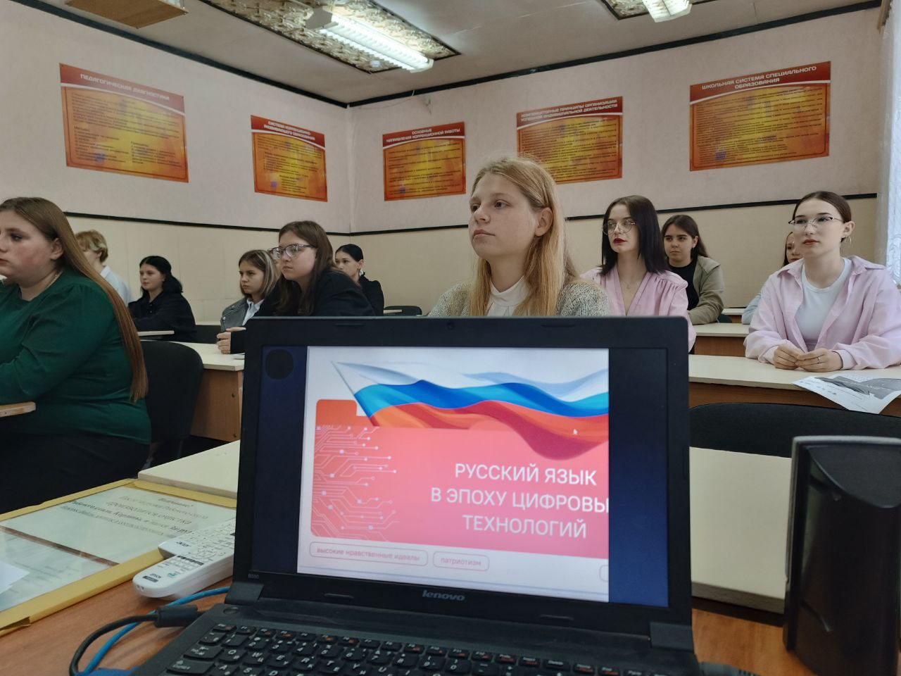 С целью формирования у обучающихся понимания важности сохранения русского языка, отражения его изменений в условиях развития цифровых технологий, объяснения пользы взаимодействия русского языка и цифровых технологий, объяснения важности изучения языковых норм и правил, 8 сентября обучающиеся Болховского педагогического колледжа приняли участие во внеурочном занятии «Разговоры о важном». На протяжении занятия, кураторы групп и студенты находили подтверждение того, что грамотность в современном мире — это не только знание базовых правил орфографии. Это навигация, т. е. умение ориентироваться в языковом пространстве. Понимать, в какой ситуации уместен формальный стиль, а в какой — неформальный. Ежедневно каждый носитель языка делает выбор в пользу тех или иных языковых средств и стилей. Взаимодействие с языком должно обогащать человека, делать его речь выразительной и яркой.