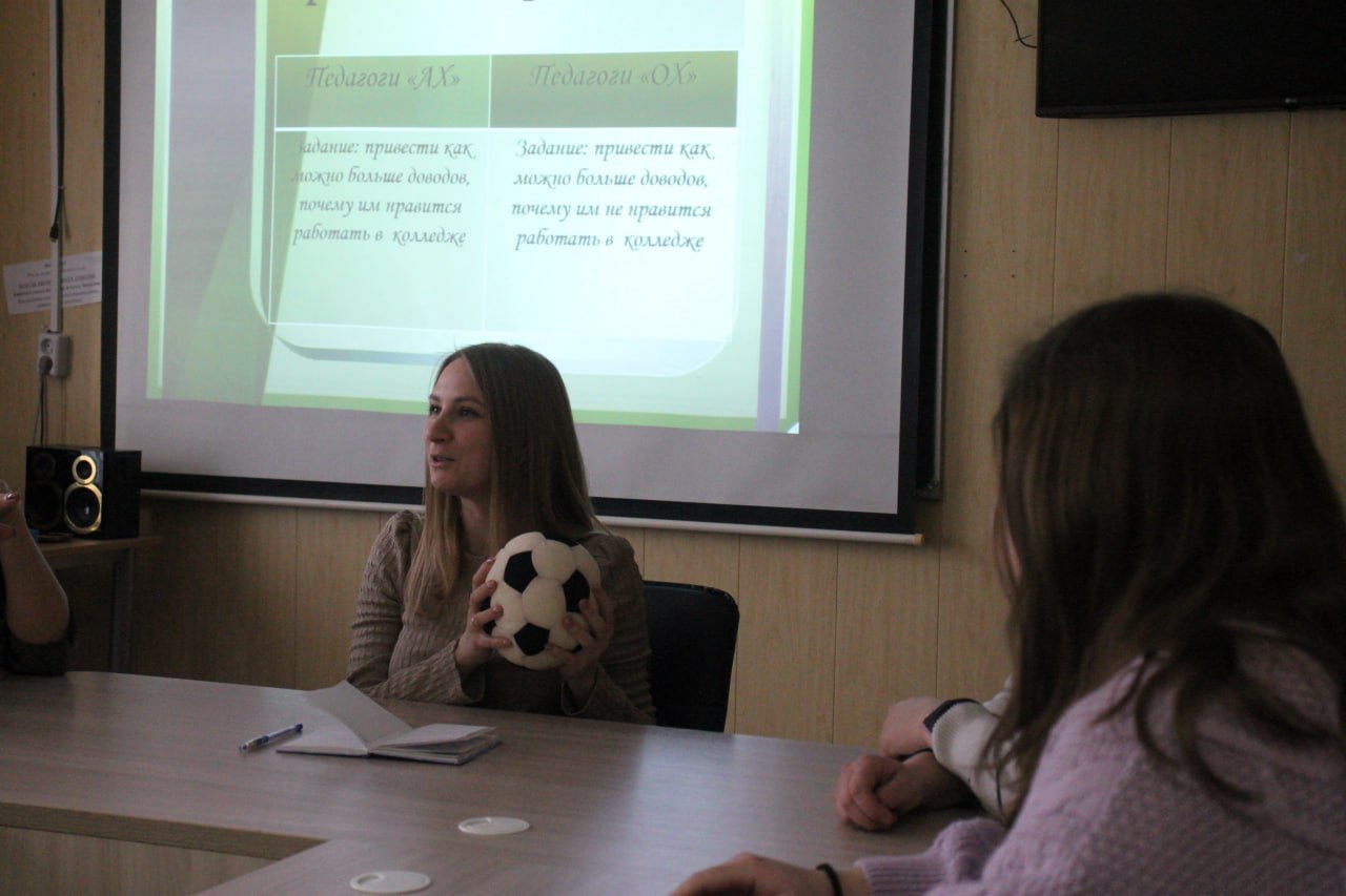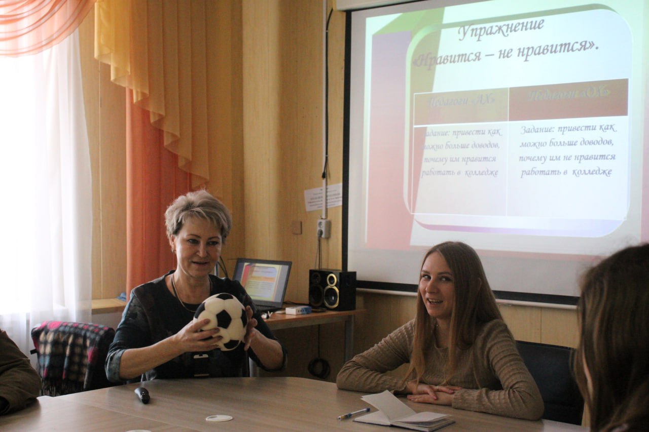 В работе тренинга приняли участие молодые преподаватели колледжа. Молодые специалисты упражнялись в отработке навыков бесконфликтного общения, толерантного отношения к окружающим, осваивали «язык принятия».