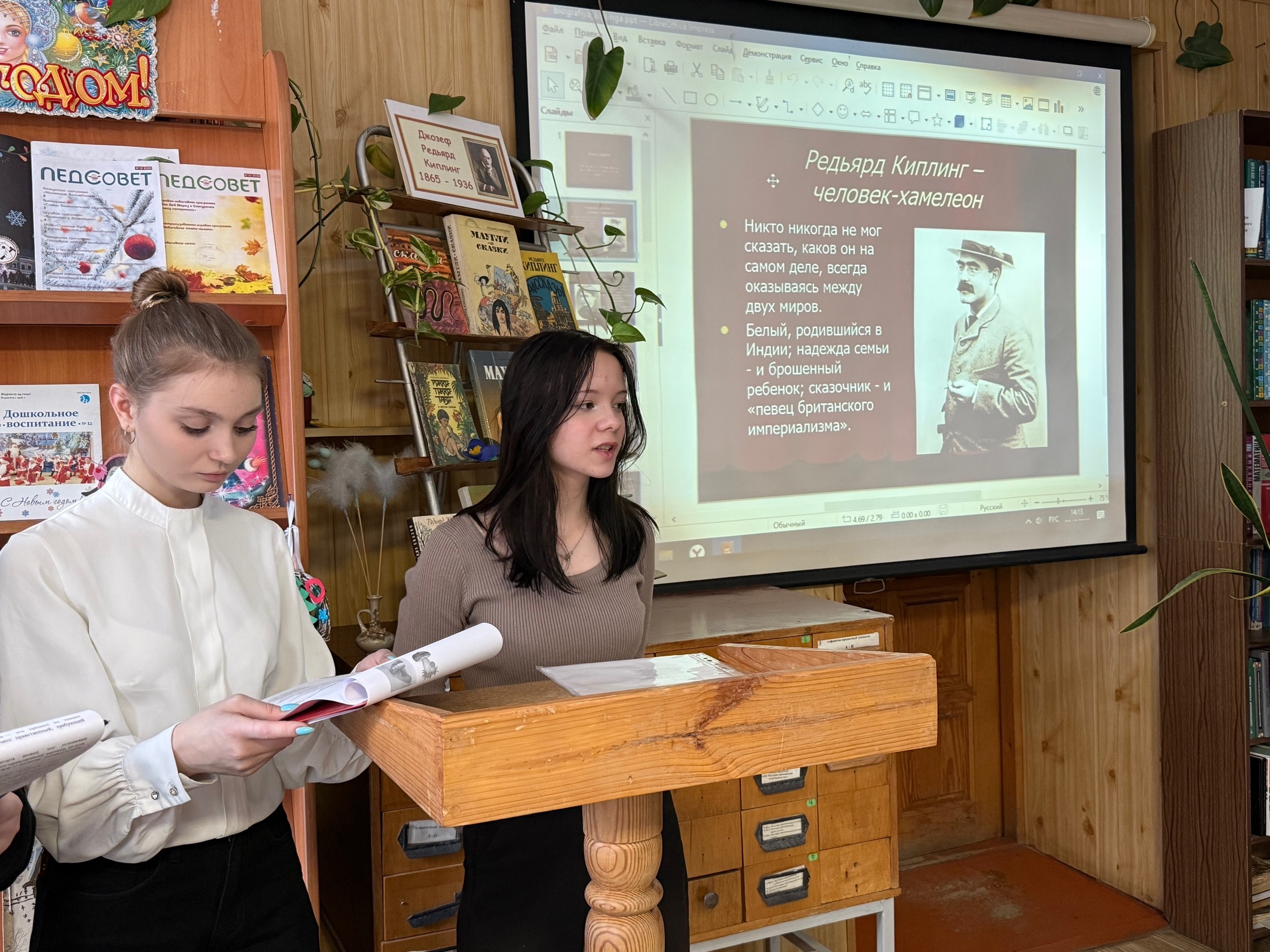 В рамках литературной гостиной 26 декабря состоялась встреча с обучающимися 1 курса специальности 44.02.05 Коррекционная педагогика в начальном образовании «Сказочные джунгли Киплинга», посвященная 160-летию со дня рождения Джозефа Редьярда Киплинга, знаменитого английского писателя. Студенты познакомились с биографией и творчеством Киплинга. Узнали, что в своих рассказах он воспевал волю, энергию, труд и подвиг «маленького» человека. Проза Киплинга, как и его стихи, отличается динамичными, упругими ритмами, энергией языка, насыщена грубоватым юмором. На выставке книг были представлены произведения автора, основную часть которых составляют повести и рассказы о жизни человеческого детёныша Маугли среди зверей в джунглях. Не менее интересная книга «Маленькие сказки», которую автор писал и иллюстрировал собственными рисунками. С рисунками автора такая книга стала библиографической редкостью.