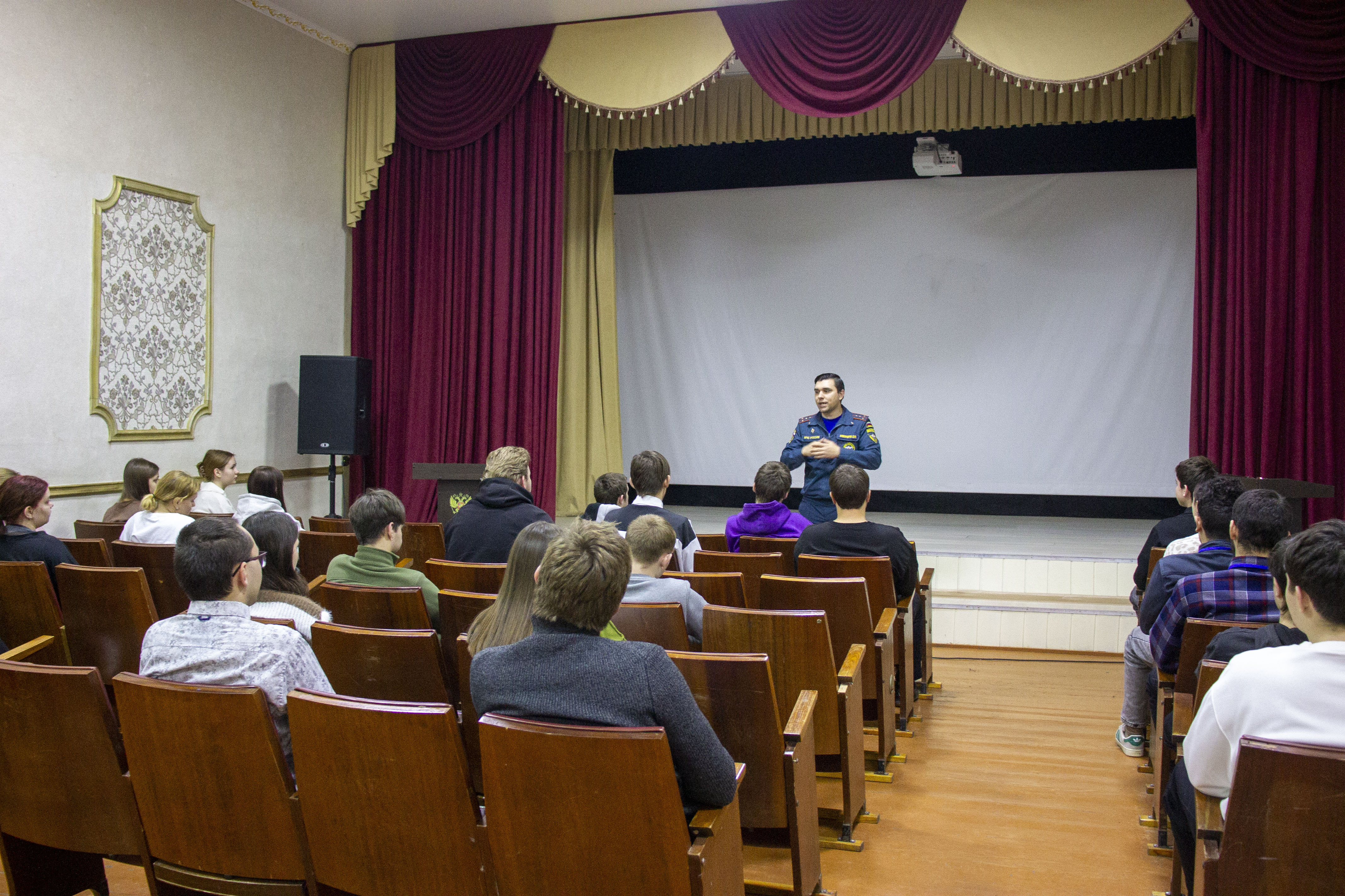 16 декабря 2025г в БПОУ ОО «Болховский педагогический колледж» состоялась встреча студентов колледжа с сотрудником отделения надзорной деятельности и профилактической работы по Болховскому району Александровым Дмитрием Юрьевичем. Он рассказал о правилах безопасного поведения в повседневной жизни и действиях в условиях различного рода чрезвычайных ситуаций. Особый акцент в диалоге со студентами инспектор сделал на поведении во время пожара и мерах безопасного поведения у водоемов в зимний период. Встреча была особенно актуальна в преддверии Новогодних праздников и длительных каникул студентов.