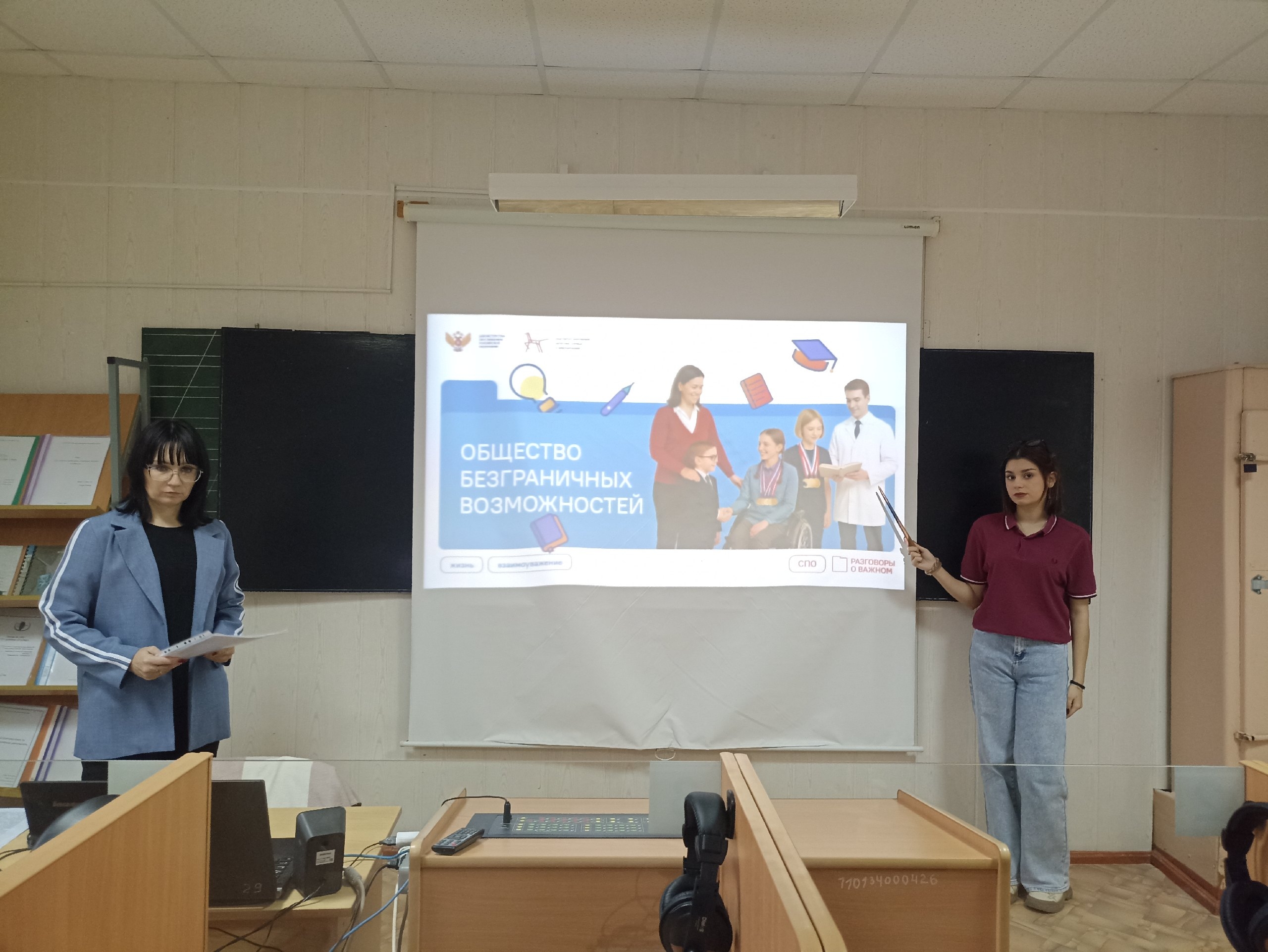 С целью расширения представлений обучающихся о возможностях самореализации в различных сферах жизни современного российского общества, стимулирования мотивации к саморазвитию, к участию в созидательной деятельности, к осознанному выбору профессионального пути, здорового образа жизни и полезного досуга, к отношениям с людьми, основанным на гуманизме, уважении и взаимопомощи, 1 ноября обучающиеся колледжа приняли участие во внеурочном занятие «Разговоры о важном». Разговор о возможностях каждого человека и о границах, которых для развития не существует не оставил равнодушным ни одного участника мероприятия. Внутреннее убеждение «не могу» или внешнее препятствие «это невозможно» создаем мы сами. Каждый может переступить через эти ограничения. И герои сегодняшнего занятия — отличный пример веры в себя и поддержки окружающих.