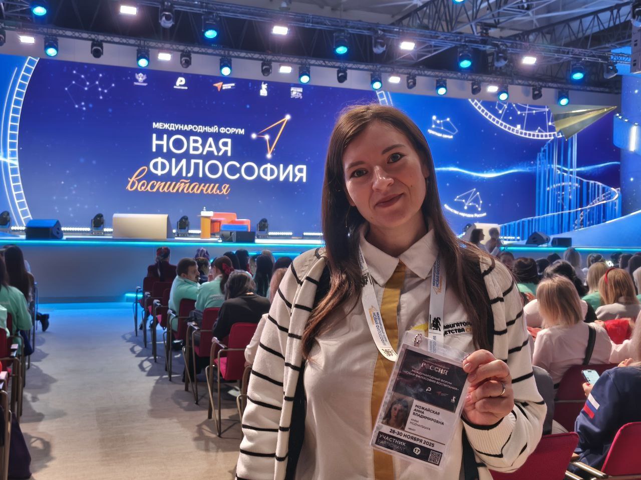 В Москве в Национальном центре «Россия» прошел международный форум «Новая философия воспитания», в котором приняла участие советник по воспитанию и взаимодействию с детскими общественными объединениями Можайская А.В. В рамках мероприятия перед участниками форума выступил директор Росдетцентра Александр Кудряшов, который выразил благодарность большой команде наставников за стремление создать воспитательную среду, где есть место каждому ребёнку. В ходе проведения форума была насыщенная образовательная программа. Форум стал уникальной площадкой обмена профессиональным опытом и укрепил сообщество педагогов, советников директоров по воспитанию, представителей молодёжного совета, активных школьников, студентов и представителей родительского сообщества.