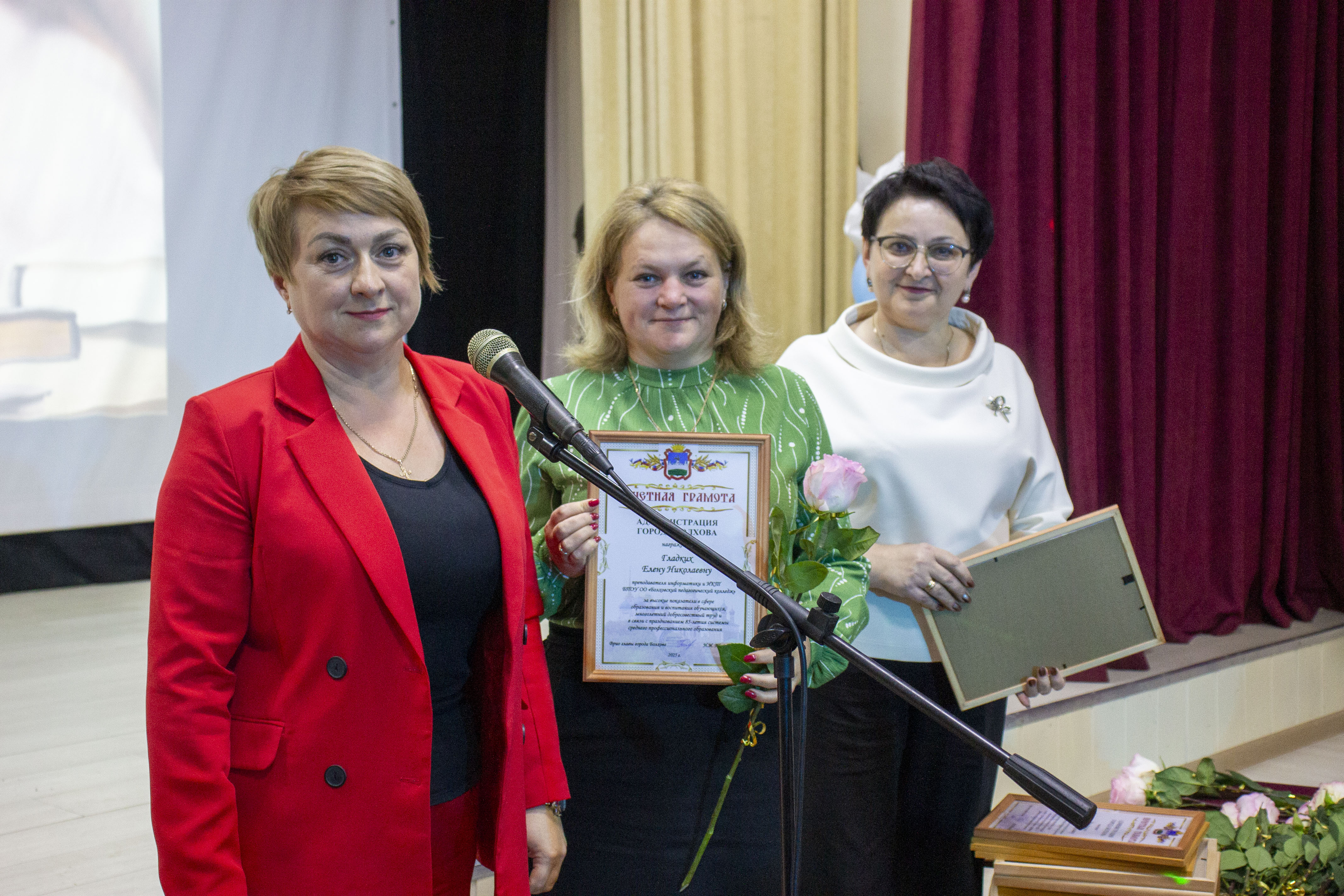 Серию праздничных мероприятий, приуроченных к 85-летию системы среднего профессионального образования в Болховском педагогическом колледже, завершила праздничная концертная программа «Путь к успеху». Творческие коллективы обучающихся и сотрудников колледжа поздравили присутствующих в зале с праздником языком хореографии, вокала и красивого слова, рассказав об истории среднего профессионального образования в Российской Федерации. День среднего профессионального образования – это праздник всех работников колледжа. В юбилей слова поздравления звучали как для преподавателей, так и в адрес тех людей, без которых колледж не существовал, не развивался и не двигался бы вперед. Слова благодарности принимали и расчётливые бухгалтера, грамотный заведующий библиотекой, искусные повара и добрая медсестра, вежливые работники отдела кадров и учебной части, заботливый технический персонал. Вручение наградного материала сотрудникам – ключевой момент мероприятия, показывающий важность каждого члена коллектива в вопросах подготовки молодых специалистов.